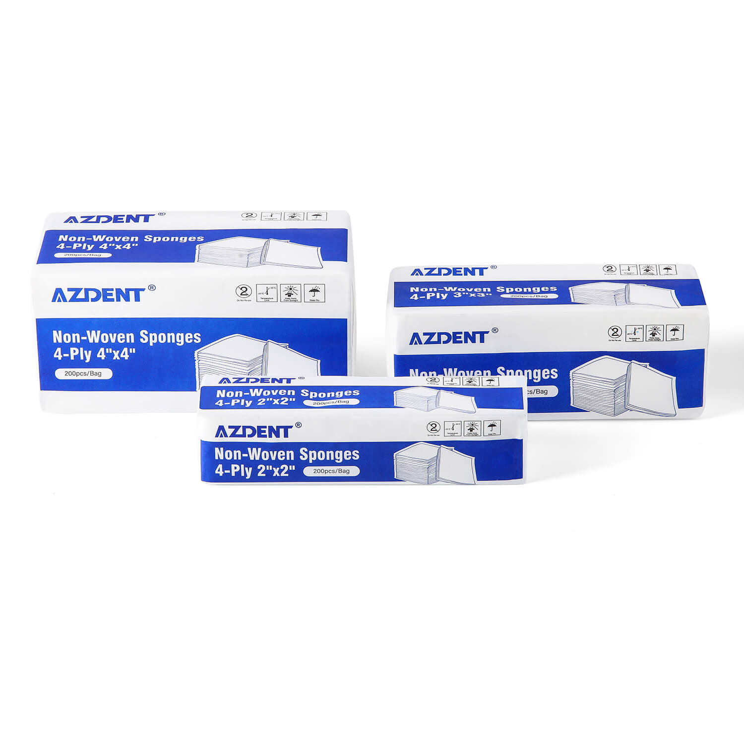 AZDENT Dental Gauze Pads Non-Woven Sponge 4-Ply Non-Sterile 3 Sizes 200pcs/Bag