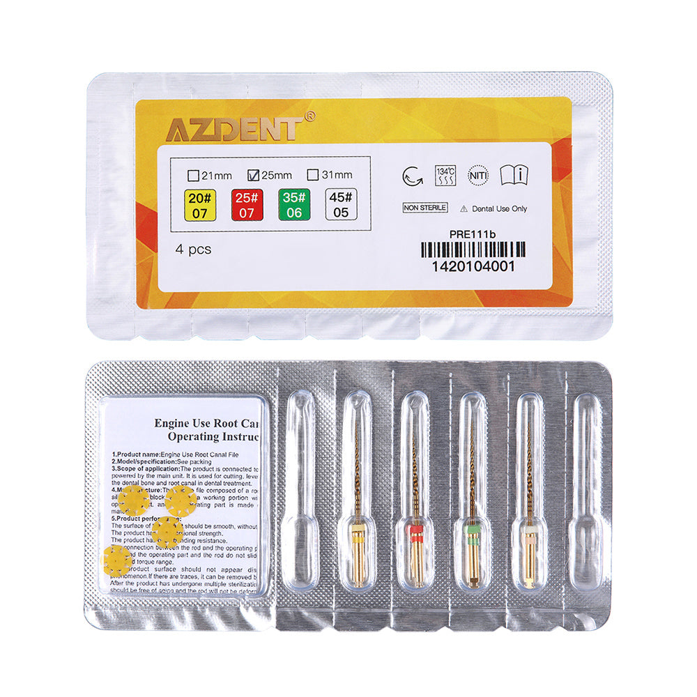AZDENT Dental Niti Rotary Engine Files Reciprocating Root Canal 25mm 4Pcs/Pack