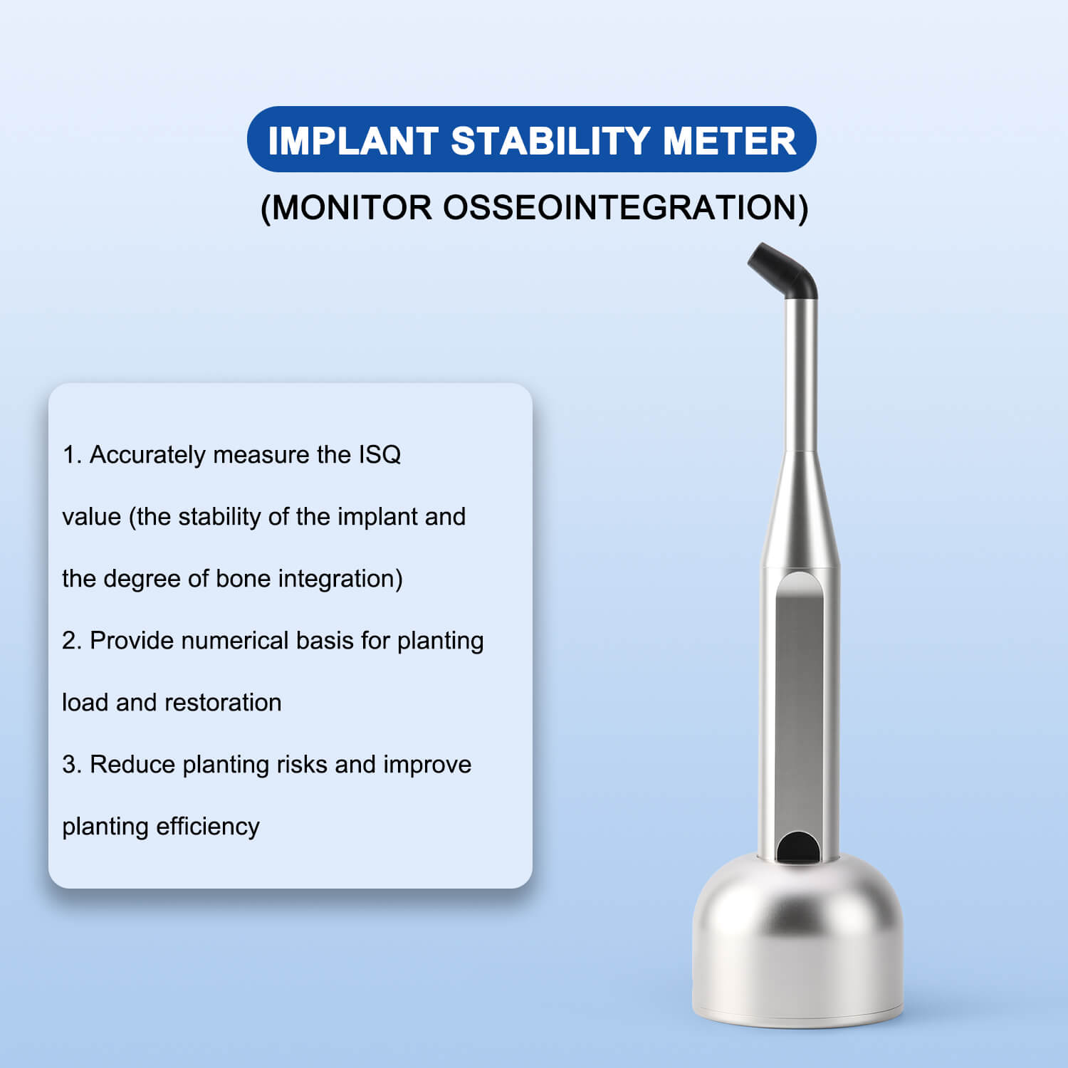 Dental Implant Stability Meter Monitor Osseointegration. The implant stability meter is only used to measure the stability of dental implants in the oral cavity or craniofacial region. It is a complete diagnostic system for assessing the stability of implants. It provides dentists with precise, consistent and reliable measurement data. By establishing a clinical database, it can better serve oral patients.