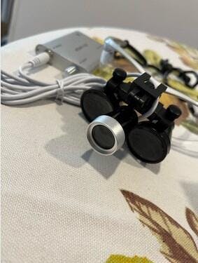 Dental Loupe Surgical Magnifier with LED Headlight 3.5X Magnification Binocular. 320-420mm working distance. 60mm field of view. Very small volume and weight. longevity and the more comfortable carry. Can be adjusted up and down freely. Free to adjust the field of view left and right, the left abd right dual lenses can achueve 60° adjustment. Free dual-field focus adjustment. Stainless steel material, strong motivarion. High temperature resistant disinfection. Low noise and wear resistance. High quality optical lenses, strong light transmission, clear image. High brightness LED light source.