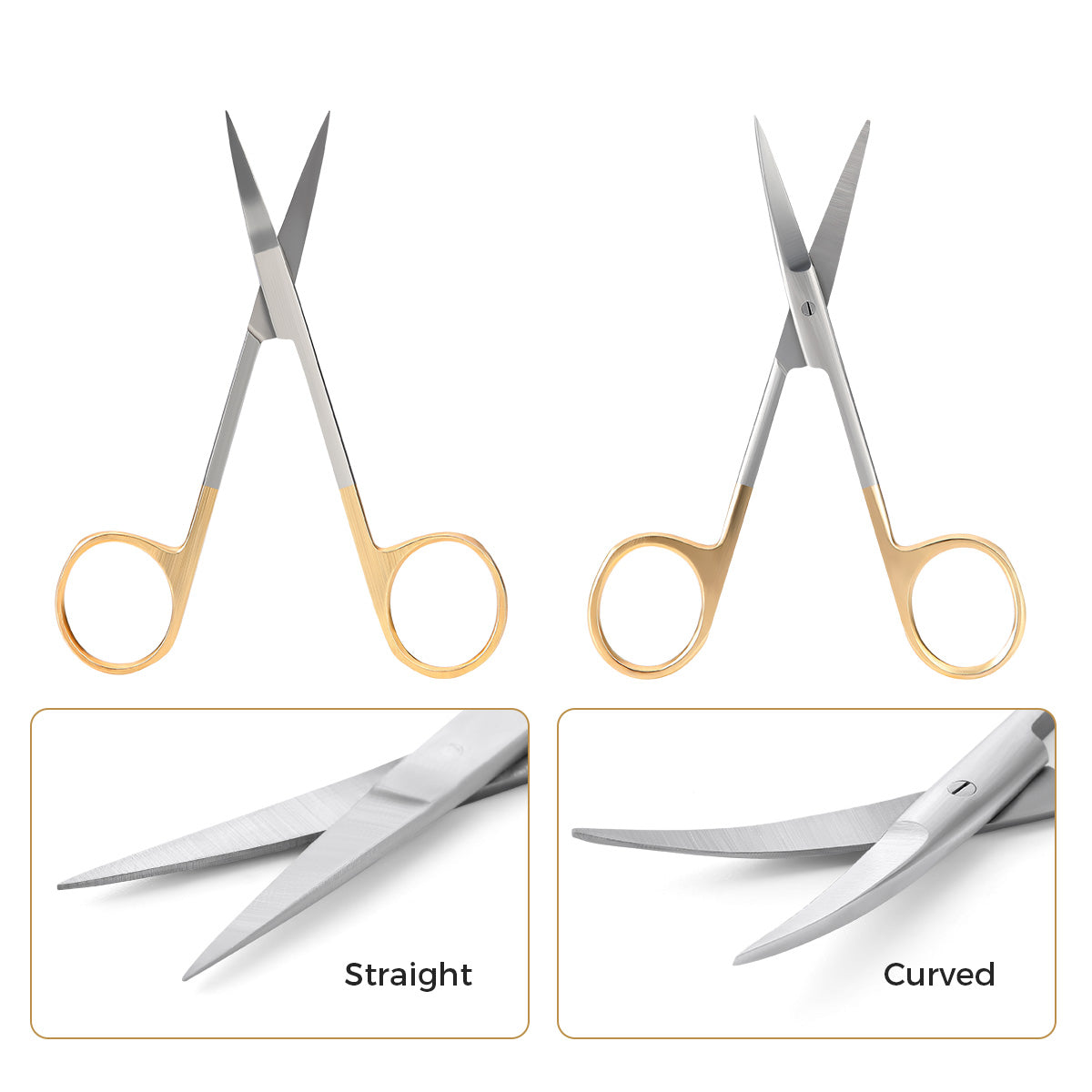 Dental Surgical Operating Scissors Stainless Steel Straight/Curved Tip SHARP Instrument. High Quality Medical Grade Stainless Steel. Extra sharp cutting edges retain their sharpness even after heat sterilization. Scissors have extra sharp cutting edges. It is 4.5 inches long scissor with a double curve to facilitate in working on the surface. Smooth surface resistance to corrosion stainless steel. Ideal shape and flexibility Weight and ideal shape design.