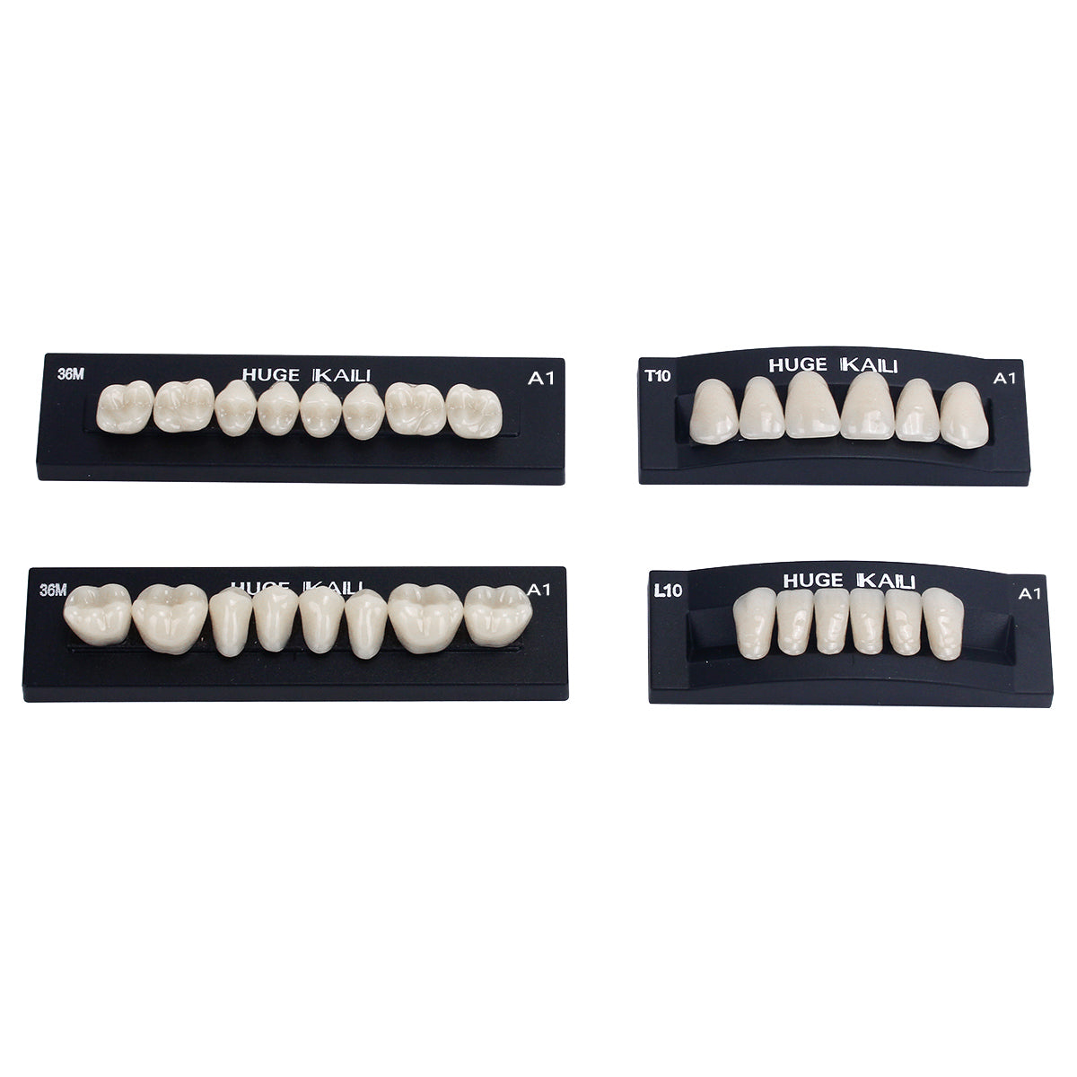 Dental Synthetic Polymer Teeth Resin Denture A1/A2/A3 28 teeth/Set. 2 layers economical teeth made by general PMMA resin. Thanks for the advanced technology of the enamel layer wrap around technology and the heat/cool press molding. High quality raw material. Excellent shade stability. Minimum water absorption. Low affinity to plaque. Fully anatomical occlusal surfaces. Natural design.